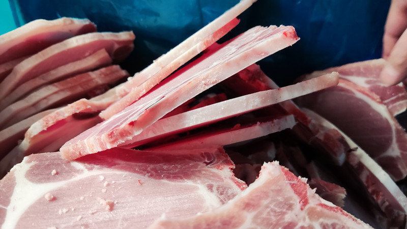 大型肉類食品(pǐn)加工廠全自動鋸(jù)骨機生(shēng)產現場;