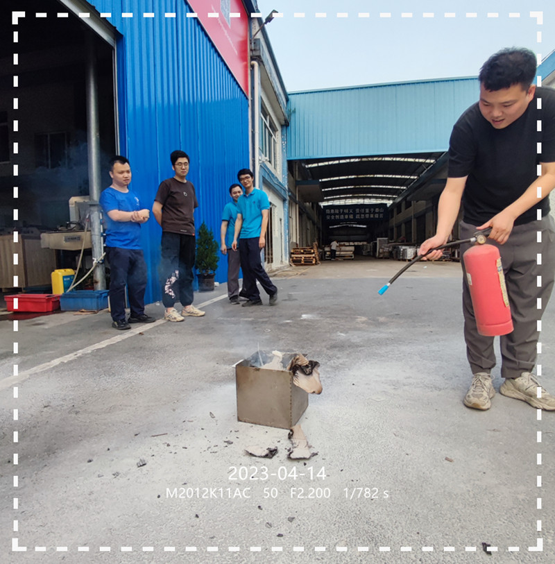 2023年4月14日;九盈機械集團公司與中文精品一区包裝機械公司,在工廠園區進行了消防滅火實操演(yǎn)練(liàn)及消防安全知識培(péi)訓(xùn);各班組消防安全(quán)員現場模擬火源被發現;及時應對;及時(shí)滅火,同時培(péi)訓了(le)大風環境下如何滅火及疏散撤離;等實操項目;旨在提高消防安全意識(shí);增強消防滅火實操技能;保障廠區安全生產穩定;