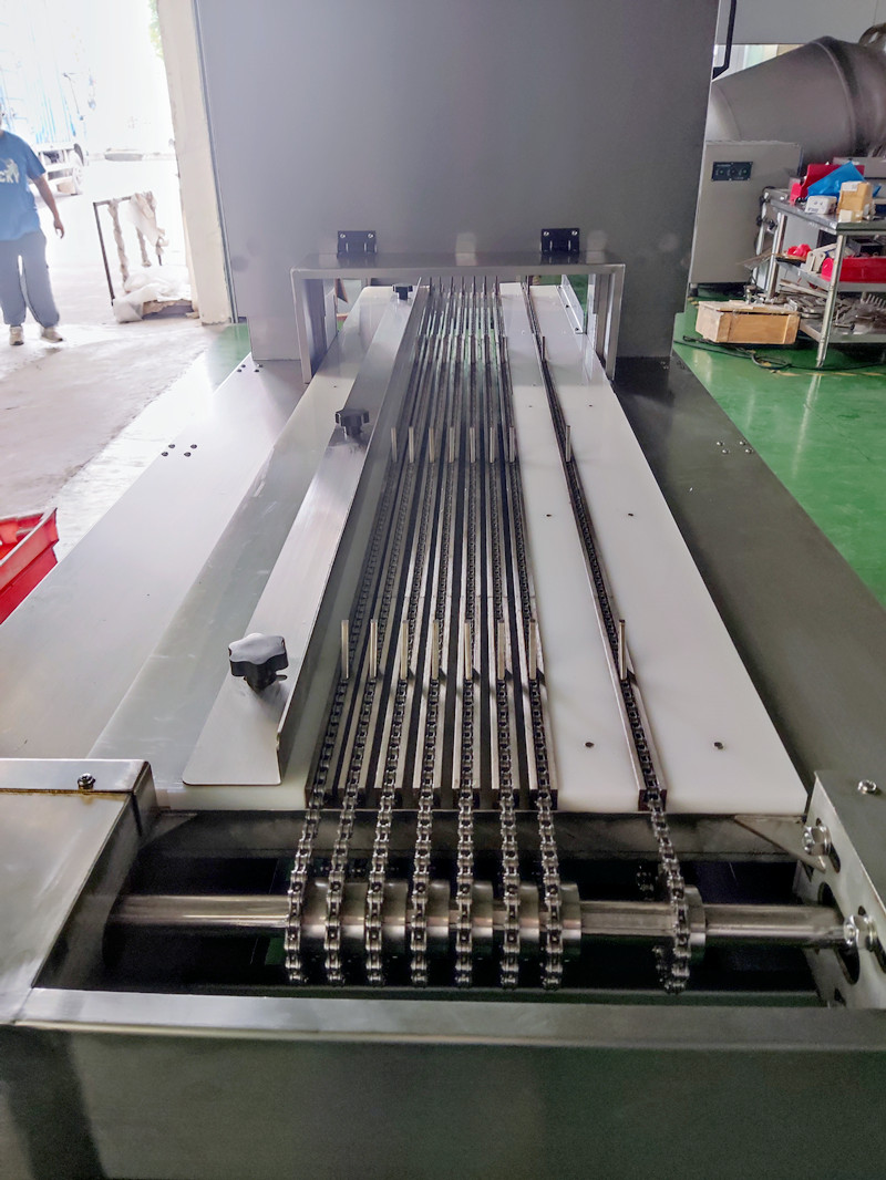 我們公司(sī)研發(fā)製造了一款(kuǎn)多(duō)用途多鋸條鋸骨(gǔ)機(jī),其自主設計和製(zhì)造過程均由我們獨立完成。該設備主要用於切割冷凍食品,如(rú)豬蹄、凍肉、排(pái)骨、牛羊肉、雞(jī)鴨等。我們采用零下-3/-18度的冷凍環境進行食品切割,效果顯著。