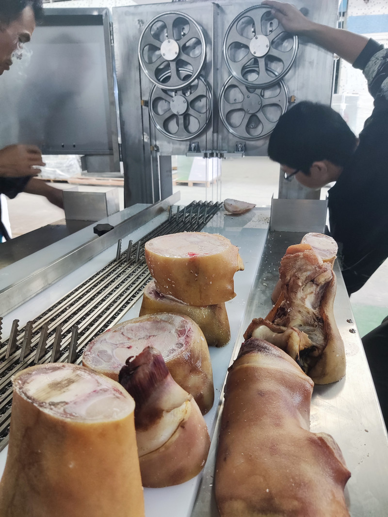 多段鋸(jù)骨(gǔ)機,是我們團隊精心設計、研發製造的(de)一款多用途(tú)鋸骨機。無論是(shì)豬蹄、羊蹄、牛肉、羊(yáng)肉、雞鴨,還是玉(yù)米、肉骨等冷凍食品,它都能輕(qīng)鬆切片、切條、切塊。這種高效的(de)技術設備,已經得到(dào)了多家(jiā)肉聯廠加工企業的青睞。