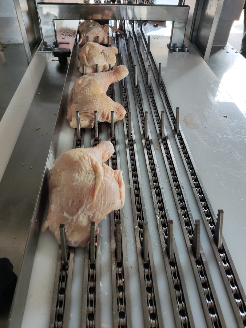 多段(duàn)鋸(jù)鋸骨機,在低溫冷庫中大顯身手,專門為處理冷凍食品而設計。它擁有連續輸送投料係統,讓操作(zuò)過程(chéng)更加安全、高效(xiào),徹(chè)底防止了傷人事故的發生(shēng)。而這(zhè)台設備的獨特之處,還在於其獨(dú)立電機驅動係統,賦予了它強勁的動力。無論是(shì)哪(nǎ)種肉骨凍(dòng)品(pǐn),它都能輕鬆應對,切割出滿足需求的形狀和(hé)尺寸。觸摸屏顯(xiǎn)示功能,讓操作(zuò)更為便(biàn)捷,鋸速和輸送速度均可輕鬆調整。