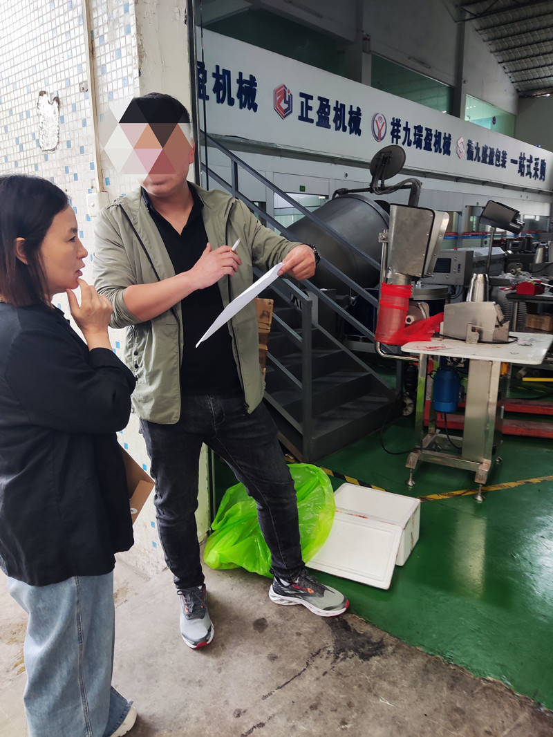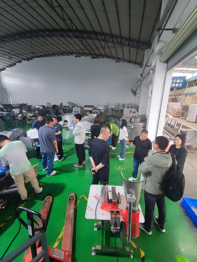 2024年4月8日、廣州市九盈機械集團公司;中文精品一区食品(pǐn)機械綜合展廳; 今天上(shàng)午三波客戶到訪,有現場考察交流(liú)的,試機打樣的,定製設(shè)備驗收的(de)都聚到一起了,果蔬切丁機 凍(dòng)肉切丁機 雞(jī)胸(xiōng)肉切片機 洗菜機 砍排(pái)機悉數亮相;這生意杠杠滴!客戶滿(mǎn)意才是王道(dào)。