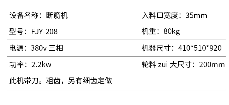 您的位置:首頁 > 產品中心 > 去(qù)豬皮/豬油/去筋膜機 > 鬆肉斷筋機FJY-208