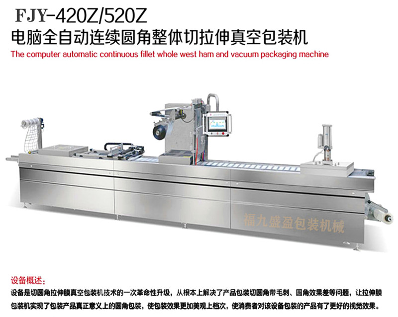 全自動(dòng)連續圓角整體切拉伸真空包裝機特點;