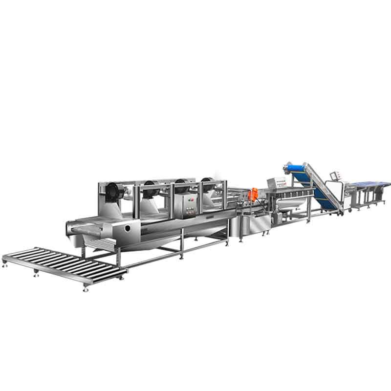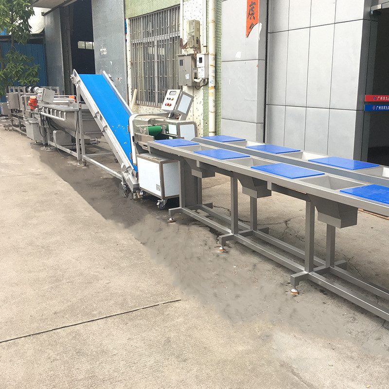 本生產線(xiàn)一共5 台設備,分為雙層挑選機—切菜機—提升機—鼓(gǔ)泡清洗機--—風幹機(震(zhèn)動瀝水),整條生產線的總功 率約10 千瓦,長度為12 米,整條生產線設計合理,外觀大(dà)方,產量可定做