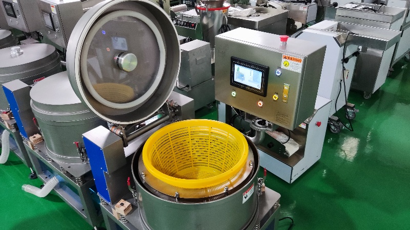 5、脫水過程可調節(jiē)速度和時間,適於不(bú)同的菜品需求(qiú)不同的轉速。