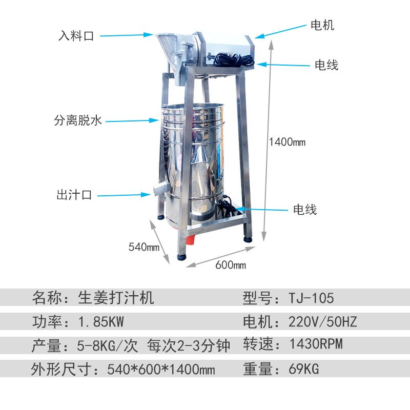 用(yòng)途:將生薑處理成薑汁,並把薑汁和薑渣分離,用於豆漿、果蔬類的打汁或分離。