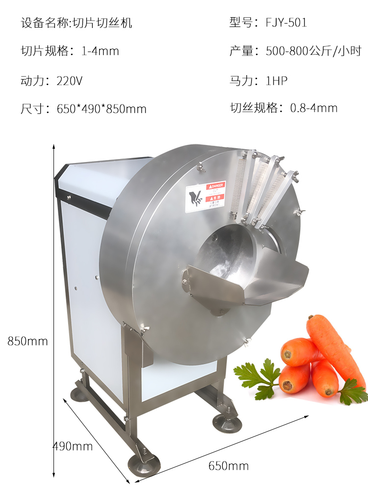 您的(de)位置:首頁 > 產品(pǐn)中心 > 切(qiē)絲切片切條(tiáo)機 > 切片切絲機FJY-501